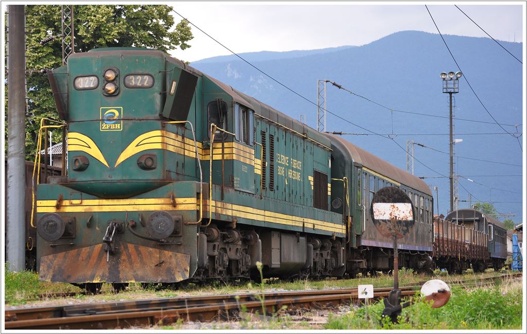 661 322 der ´FBH (´eljeznice Federacije Bosne i Hercegovine) zieht den Sonderzug des Rotary Club Bihać mit einem AB, zwei offenen Rs und einem B nach Martin Brod und zurück. (29.06.2013)