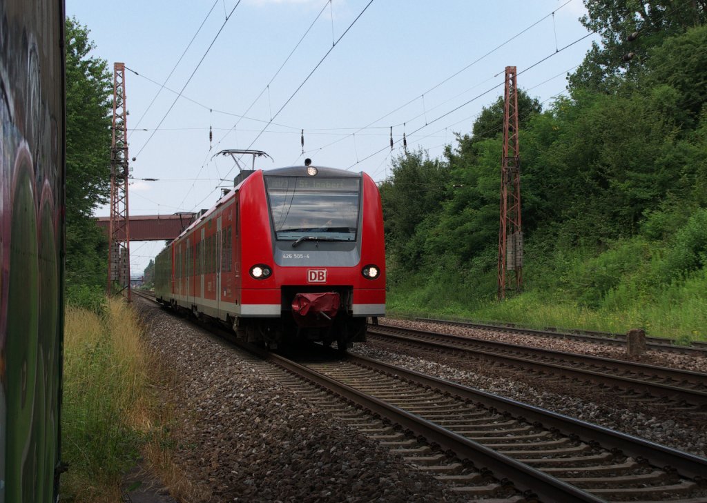 Der Blick unter der Brücke zum Hafen Saarlouis-Dillingen wurde mal wieder ausprobiert. Bei Regen hat man dort einen trockenen Platz. Heute am 10.07.2013 war es mal bewölkt und mal sonnig aber sehr warm. Aufgefallen ist mir an den drei Stunden am Bahndamm, dass keine 143er mit Doppelstockzügen zu sehen waren. 426 005 und 426 020 auf ihrer Stammrelation Montag - Freitag zwischen Dillingen/Saar und St. Ingbert. Danke an den TF für den Gruß. KBS 685 - Bahnstrecke 3230 Saarbrücken - Karthaus