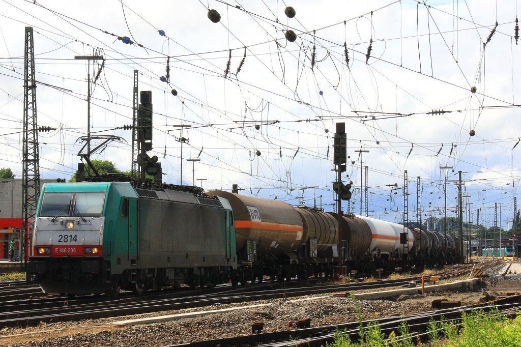 186 110 "Rail Magazine" der Rurtalbahn fuhr am 10.07.13 einen Kesselwagenzug durch Remschütz.