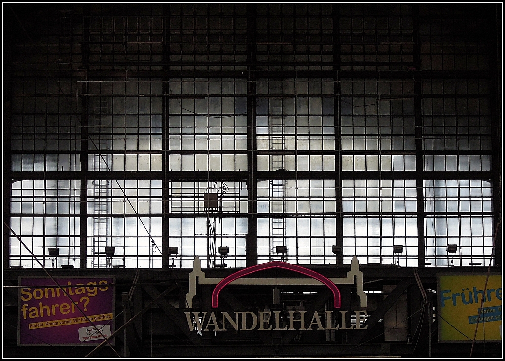 obere Eisenbahnebene mit dem unmittelbar hinter der Glasfront gelegenen