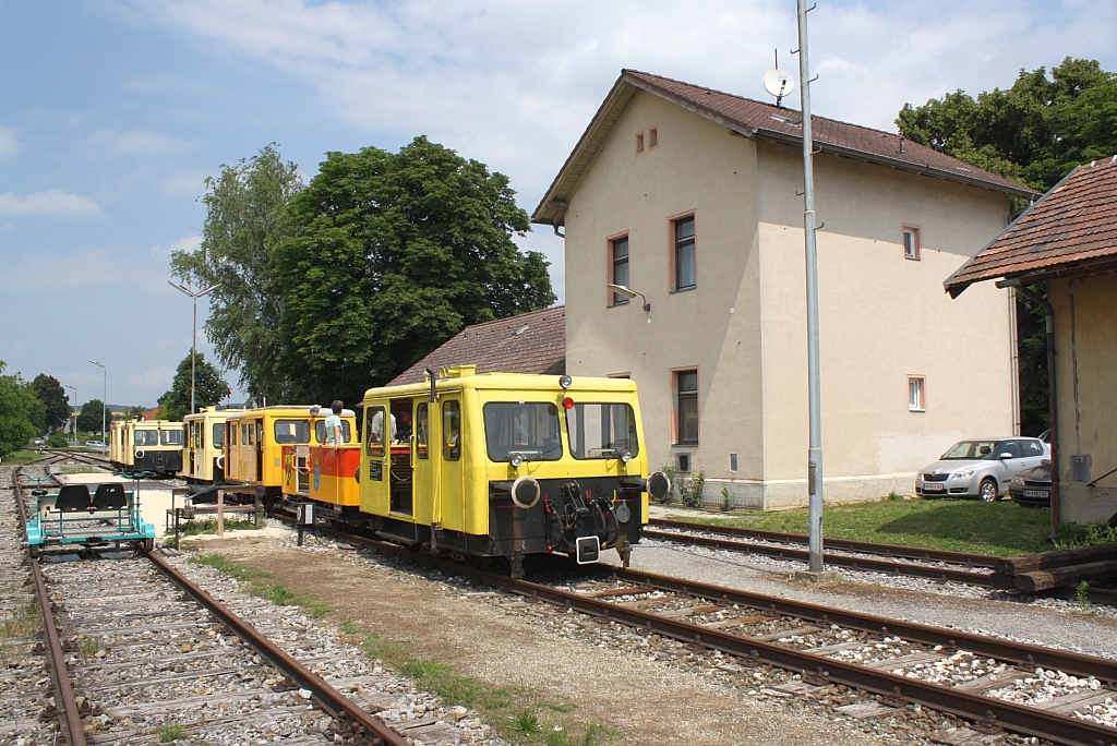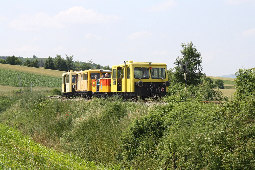 Zayataler Schienentaxi, bestehend aus VSS X626.144, X501.0001, X501.0002 und X626.172 am 07.Juli 2013 kurz nach der Endstelle Mistelbach Interspar in Richtung Asparn a.d. Zaya fahrend.