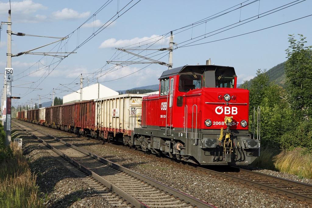 2068 023 mit Verschubgüterzug in Kapfenberg Deuchendorf am 16.07.2013.