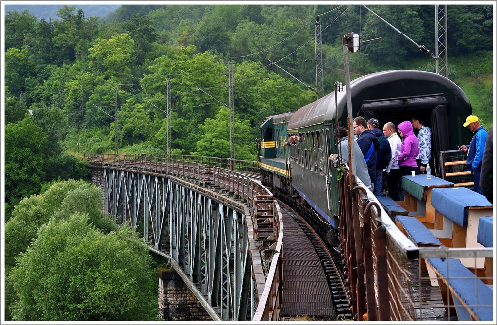 Extrazug Rotary Club Bihać. Gleich hinter Kulen Vakuf wird ein Seitental auf einer grossen Fachwerkbrücke überquert. (29.06.2013)