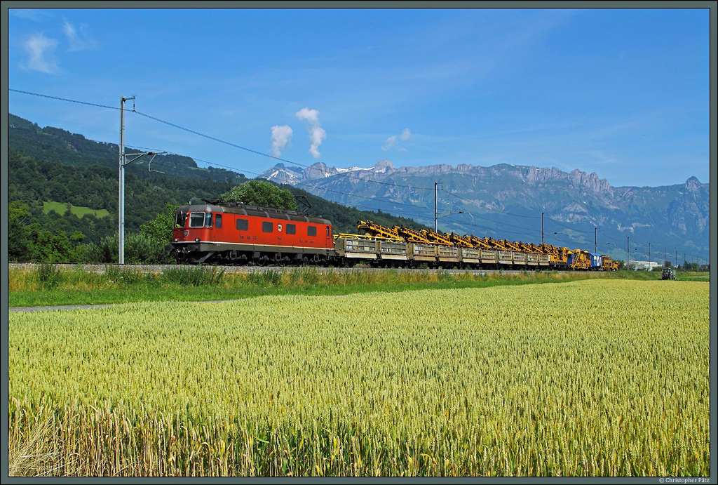 620 042-2 der SBB Cargo mit einem Güterzug bei Sevelen. Im Hintergrund erhebt sich der Alpstein. (09.07.2013)