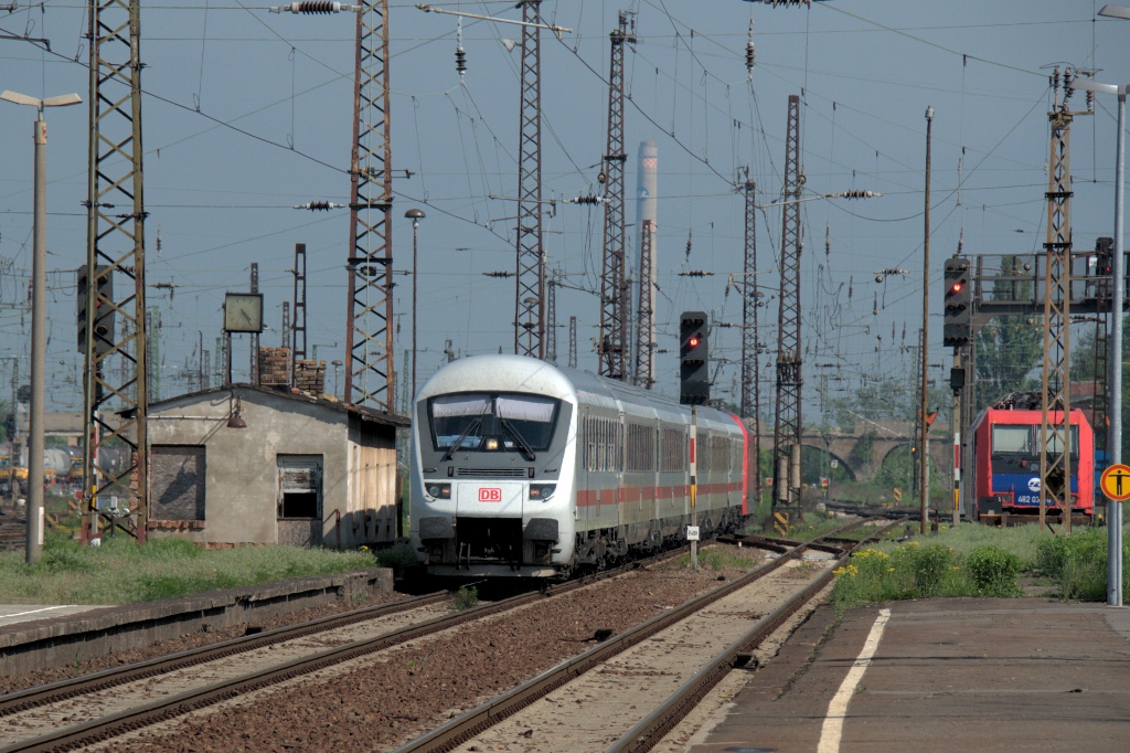 Am 24.05.2013 stand 113 309-9 mit dem Autoslaaptrein 13409 am Bahnsteig in Darmstadt Hbf. Links zusehen, 120 126-8 mit IC 2171 beim Zwischenhalt im Hauptbahnhof. An diesem Tag hatte die 120er direkt dahinter die frisch repariete 103 235-8, die von Frankfurt nach Stuttgart überführt wurde, um wieder im 103er Umlauf fahren zu können.