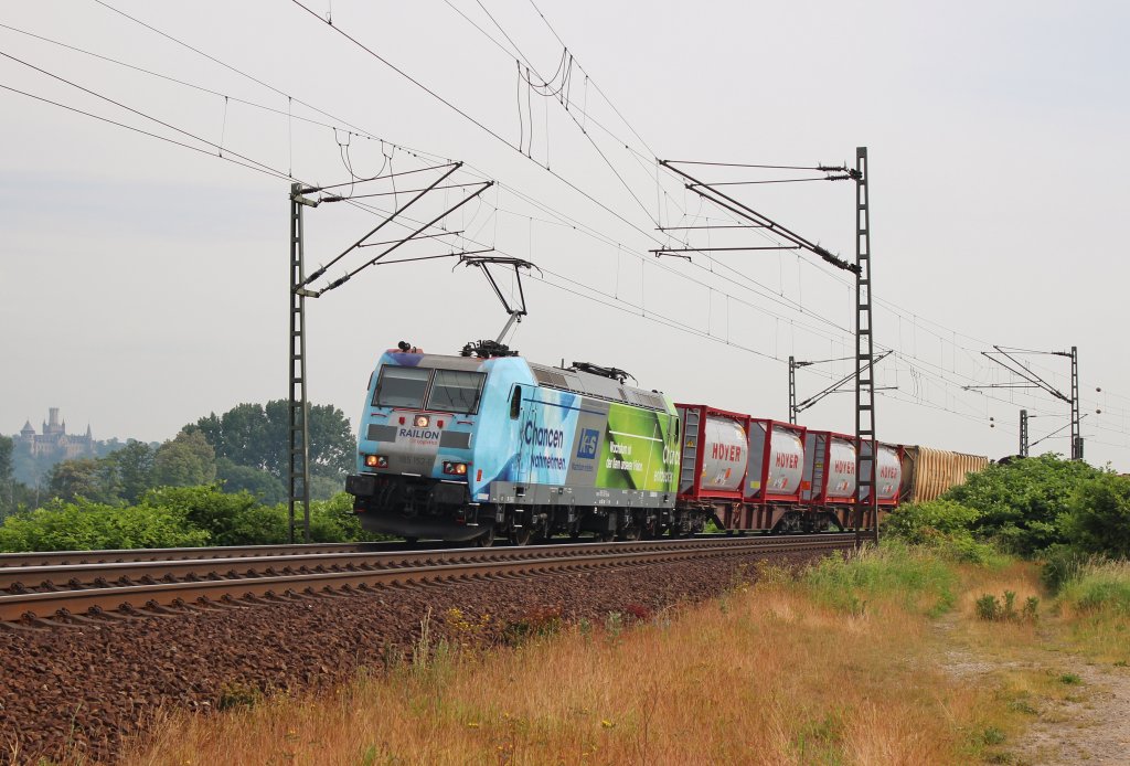 Am 19.Juni 2013 war K+S 185 152 mit einem gemischten Güterzug bei Burgstemmen auf dem Weg Richtung Süden.