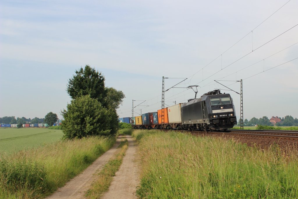 Am 19.Juni 2013 war MRCE 185 565 mit einem Containerzug bei Burgstemmen auf dem Weg Richtung Norden.
