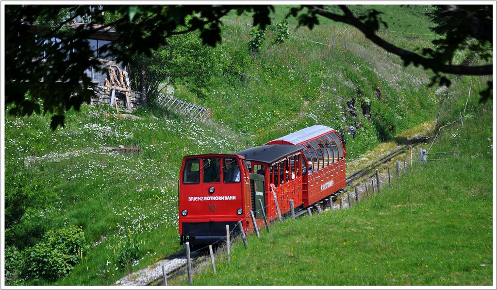 Auch zwei Diesel waren an diesem Tag unterwegs. Nummer 10 kommt hier von Oberstaffel nach Planalp herunter. (15.07.2013)