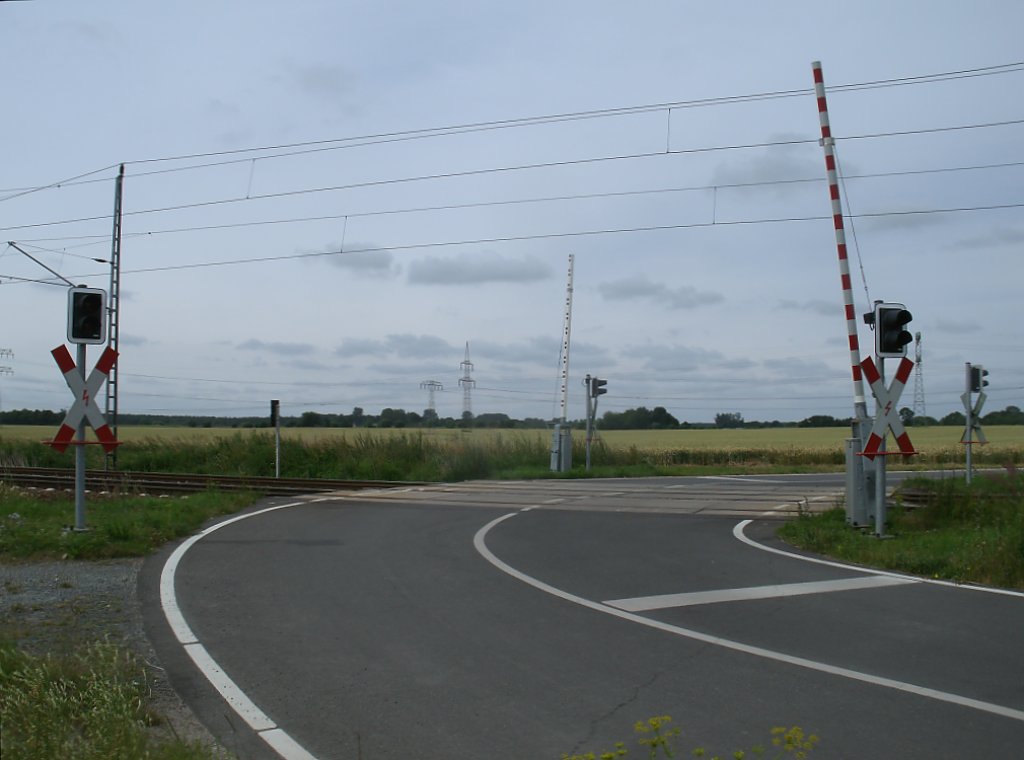 Bahnübergang in Stralsund Andershof an der Strecke Stralsund-Berlin am 14.Juli 2013.