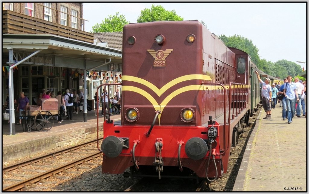Diese schöne Diesellok NS 2225 war auch zu Gast bei dem Jubiläumsfest (Stoomtrein Jubileum Dagen) der ZLSM am 14.07.2013.Gerade aus Kerkrade eingefahren hält der Sonderzug in Simpelveld.