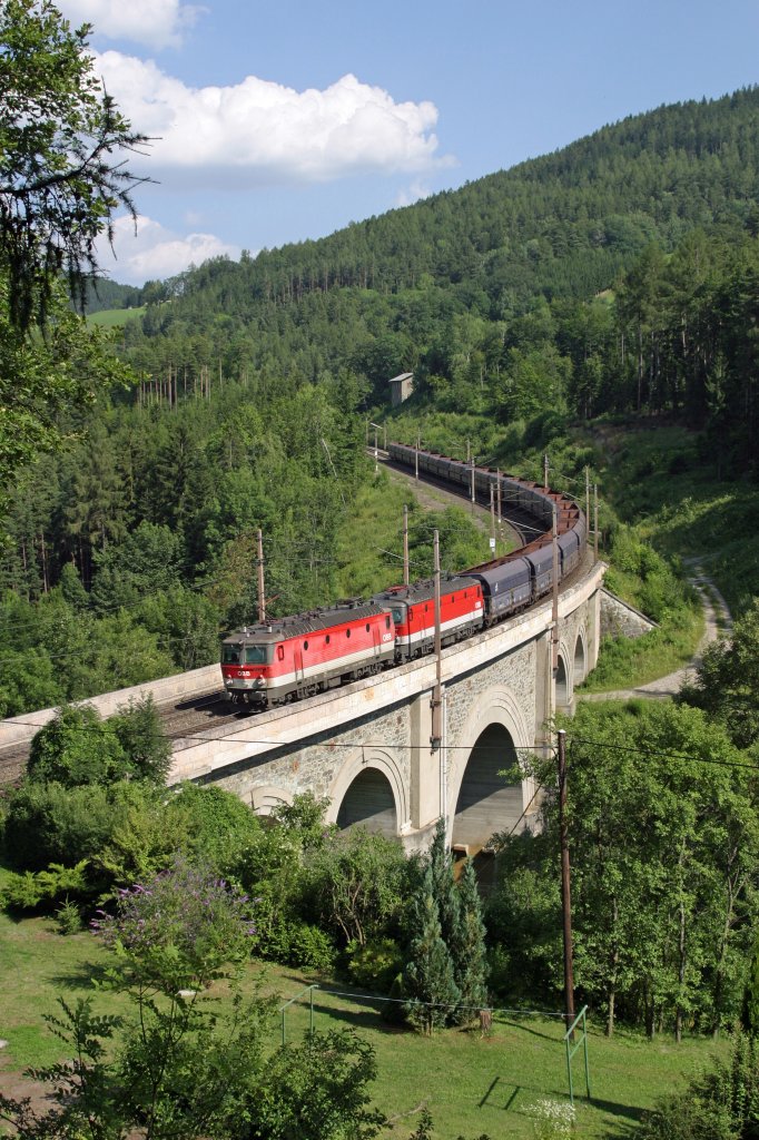 Herrliches Motiv auf den Höllgraben-Viadukt: 1144.216+258 mit GAG-47363 am 17.7.13