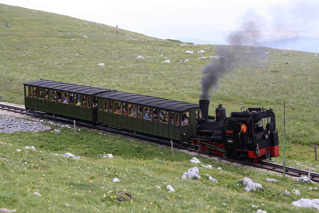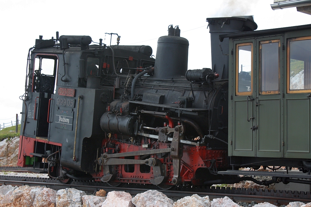 Lok 15 erreicht die Ausweichstelle Oberstaffel. Die Zahnstangenweichen werden von Hand gestellt für den Gegenzug. (15.07.2013)