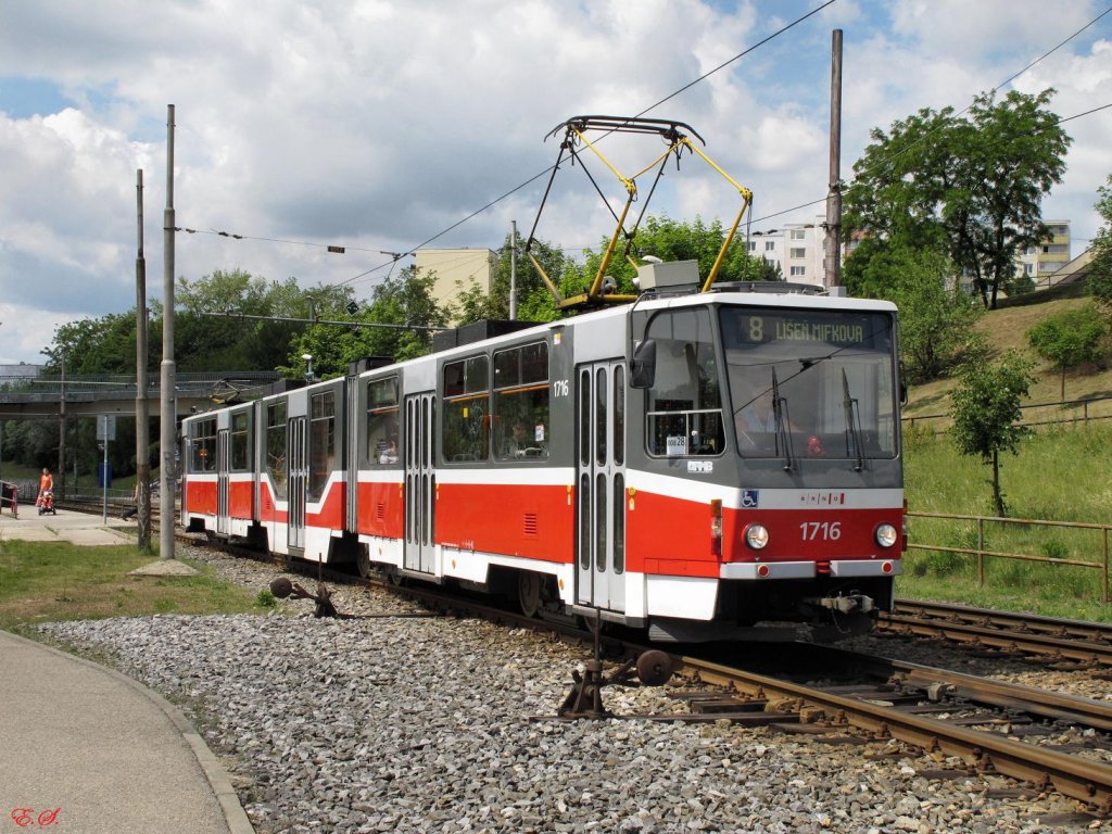 Tw.1716 der Type KT8D5R.N2 mit Niederflurmittelteil auf der Fahrt nach Lisen bei der Haltestelle Kotlanova.(07.06.2012)