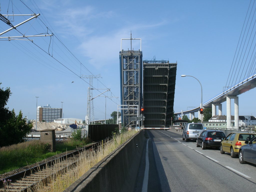 Wenn sich die Ziegelgrabenbrücke in Stralsund für den Schiffsverkehr öffnet,heißt das für den Straßen-und Bahnverkehr 20 Minuten warten.Aufgenommen am 13.Juli 2013.
