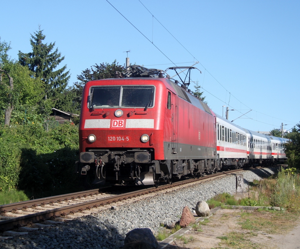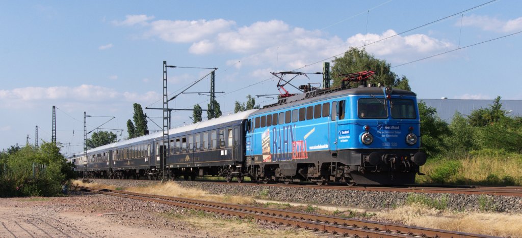 120 104-5 Mit Sonderzug Nummer 2.von Rostock-Seehafen nach Berlin-Charlottenburg bei der Durchfahrt auf der Güterumfahrung beim Rostocker Hbf.20.07.2013