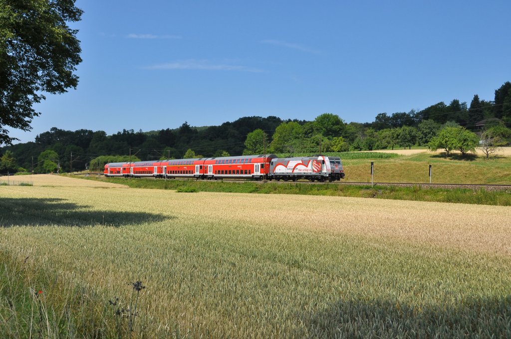146 227 Das neue Herz Europas fährt mit IRE 4227 nach Lindau HBF.Das Bild entstand an der Filsbahn bei Ebersbach an der Fils am 20.7.2013