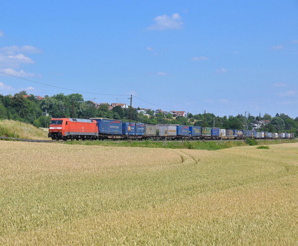 152 160 mit einem KLV auf der Filsbahn Richtung Kornwestheim.Aufgenommen bei Ebersbach an der Fils am 20.7.2013