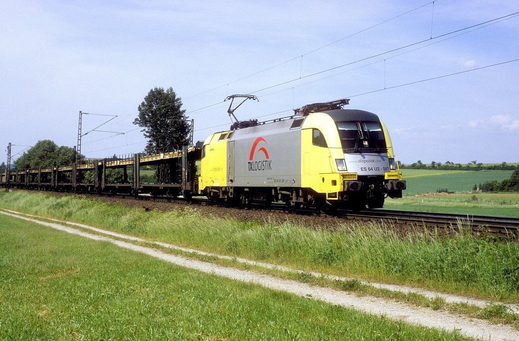 MEG 705 (155 196) und MEG 605 (143 344) mit dem Zementleerzug von Regensburg nach Rüdersdorf (bBerlin) am 17.07.2013 bei Postbauer-Heng an der KBS 880 Regensburg-Nürnberg.