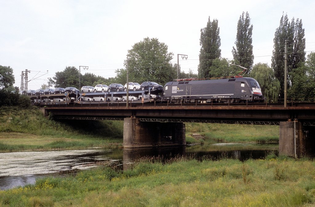 Hier 182 006 mit einem RE1 (RE18111) von Magdeburg Hbf. nach Frankfurt (Oder), bei der Ausfahrt am 28.6.2013 aus Berlin Wannsee.