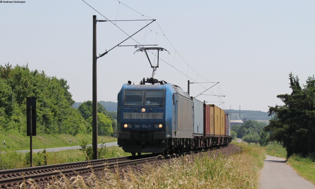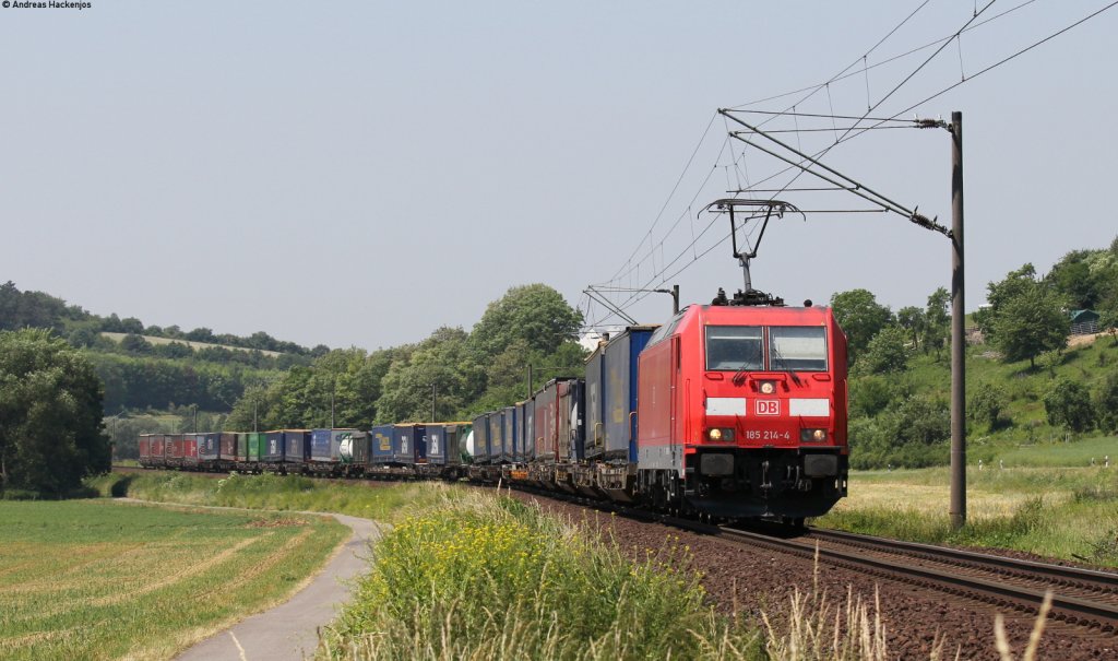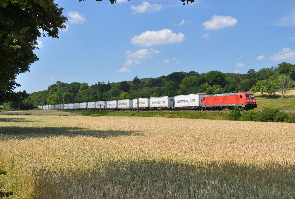 185 377 mit dem Ekol-KLV auf der Filsbahn in Richtung München.Aufgenommen bei Ebersbach(Fils)am 20.7.2013