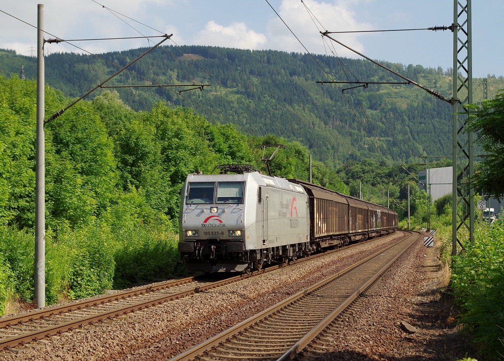 185 537 TXL mit H-Wagenzug am 20.07.2013 in Kaulsdorf (Saale) gen Saalfeld.
