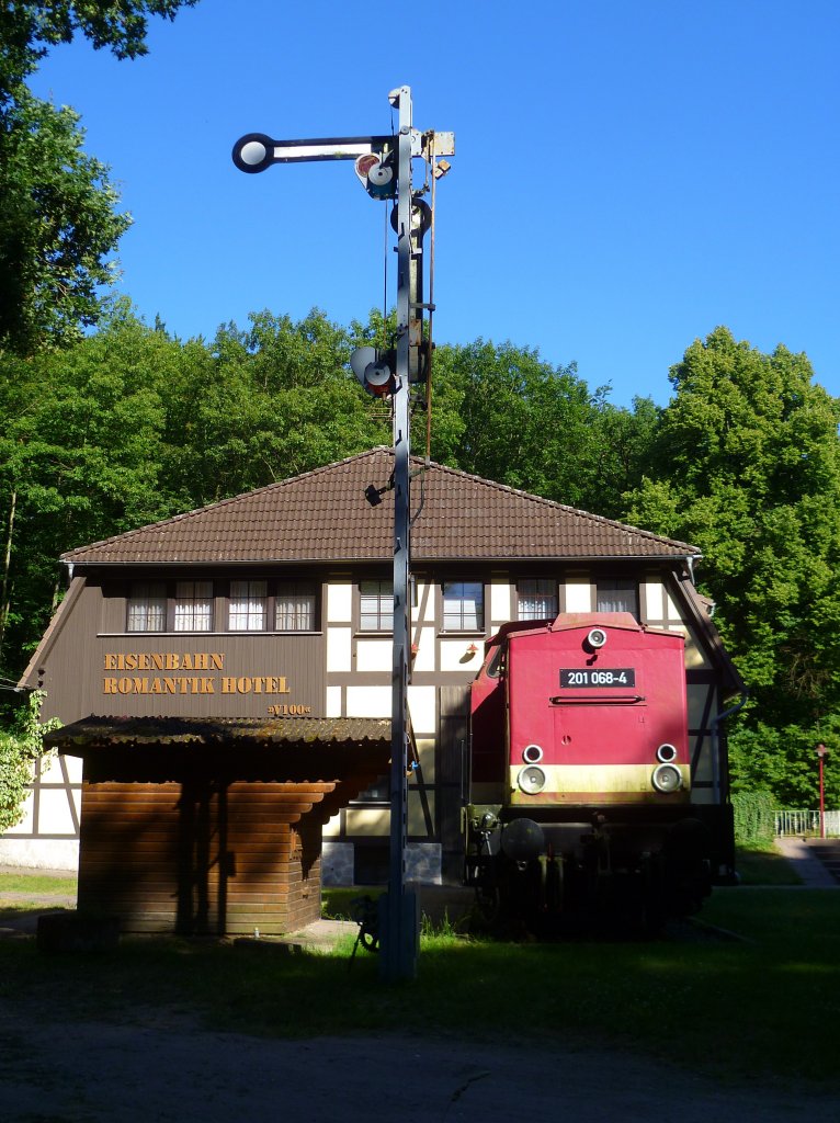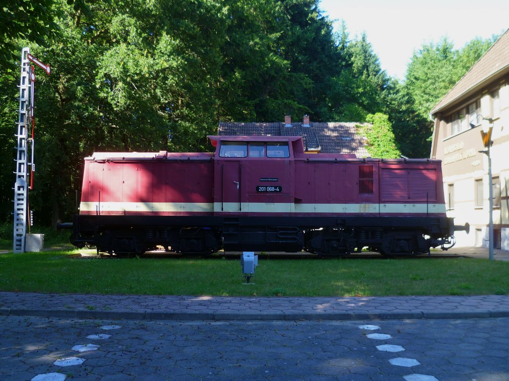 201 068-4 vor dem Eisenbahn Romantik Hotel "V100" in Plau am See am 20.07.13.