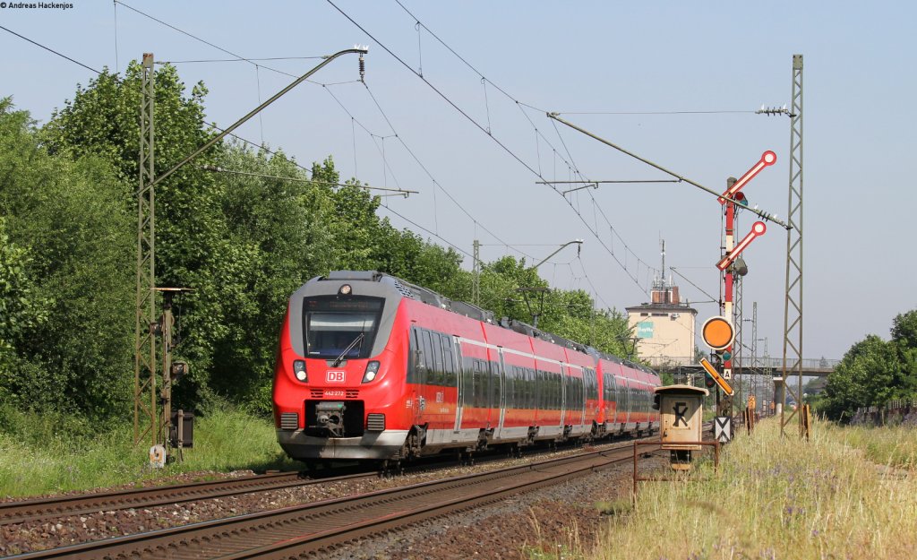442 272-1 und 442 276-2 als RE 4133/RE 4783 (Sonneberg(Thür)Hbf/Würzburg Hbf-Nürnberg Hbf) bei Hirschaid 19.6.13 Ich hab das Bild wegen der Signalstellung eingestellt
