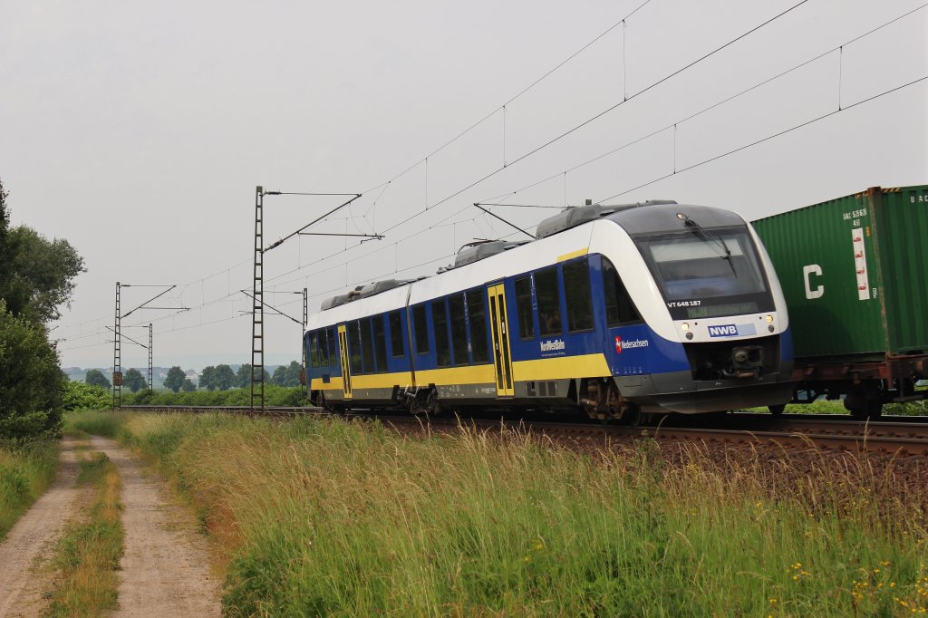 Am 19.Juni 2013 war VT648 187 als NWB bei Burgstemmen auf dem Weg nach Hildesheim Hbf.