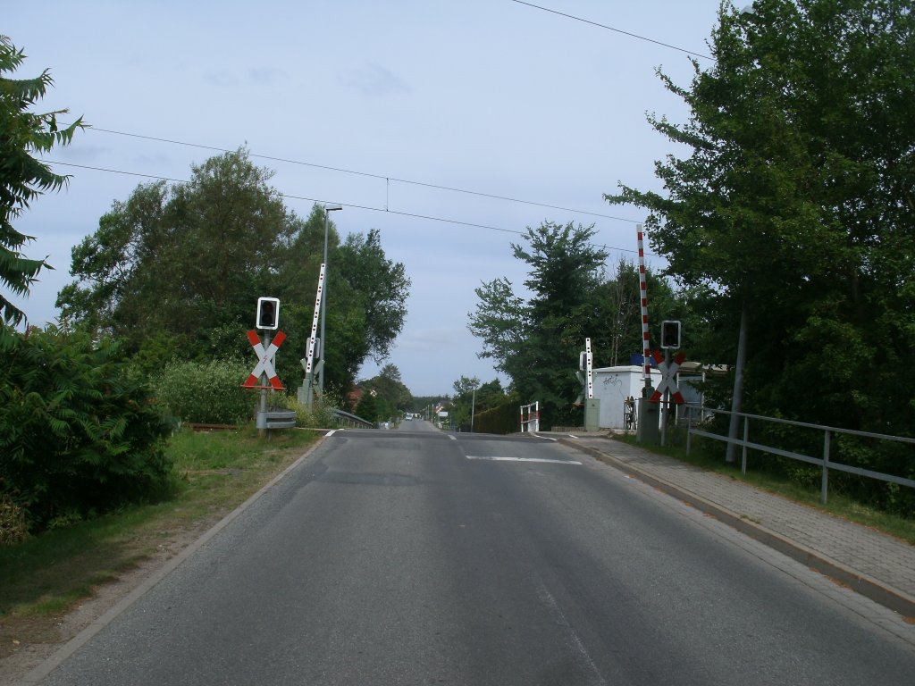 Bahnübergang in Zarrendorf(Strecke Stralsund-Neustrelitz) am 14.Juli 2013.