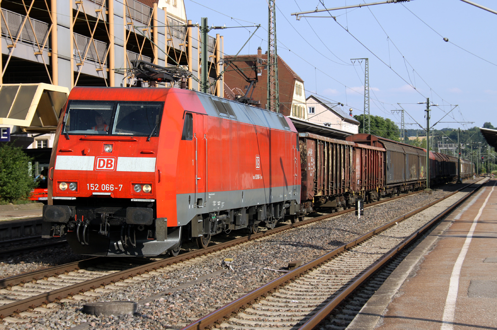 Die 152 066-7 durchfährt Plochingen mit einem gemischten Gz am 12.07.2013
