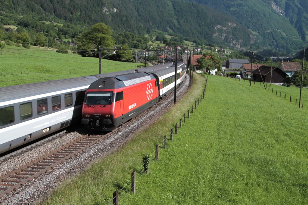 Die 460 118-3 mit einem IR bei Wassen am 13.06.2013
