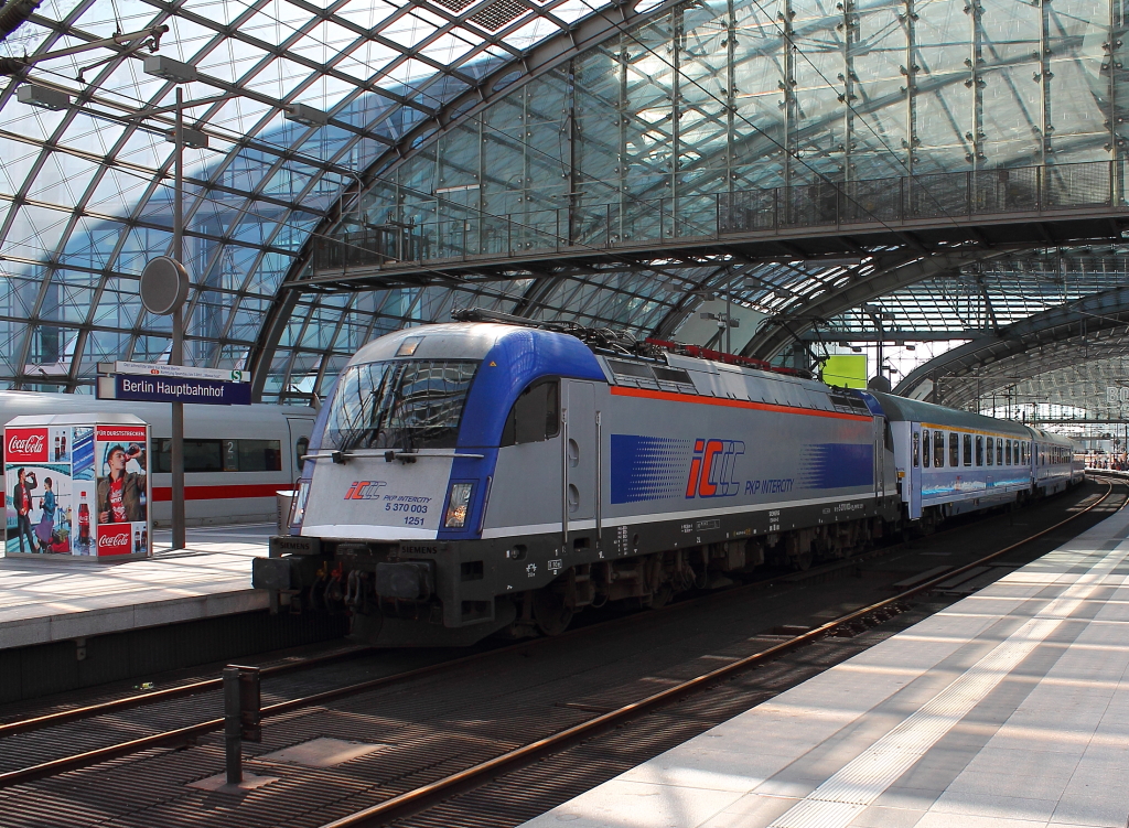 Die 5 370 003 der PKP mit dem "Berlin-Gdansk-Express" EC 55 von Berlin Hbf nach Gdynia Glowna kurz vor der Abfahrt in Berlin Hauptbahnhof am 18.07.2013