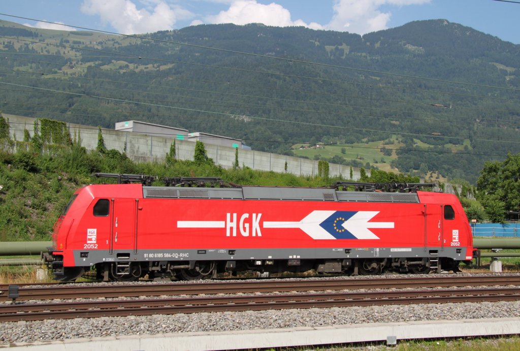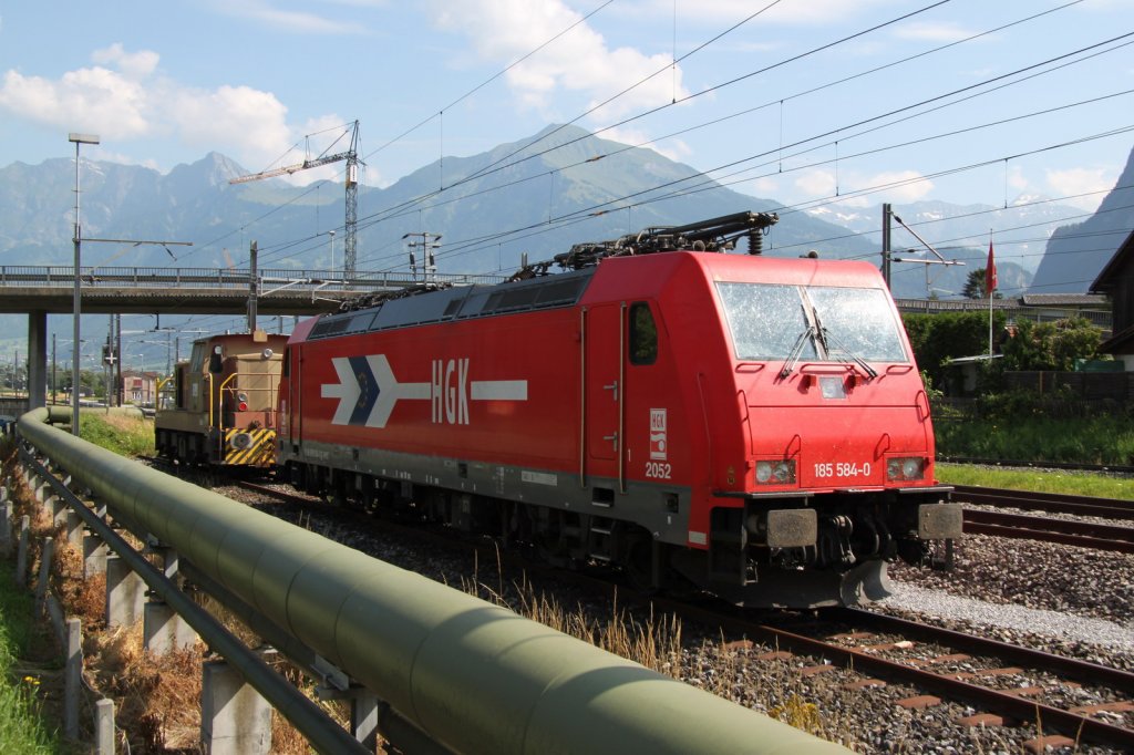 HGK Mehrsystemlok 185 584-0 abgebügelt auf einem Abstellgleis in Zizers/GR.Rhein Cargo fährt 2x wöchentlich einen Zug mit Braunkohlenstaub von Köln-Frechen direkt nach Zizers/GR (Zementwerke Untervaz)Zizers 19.07.13