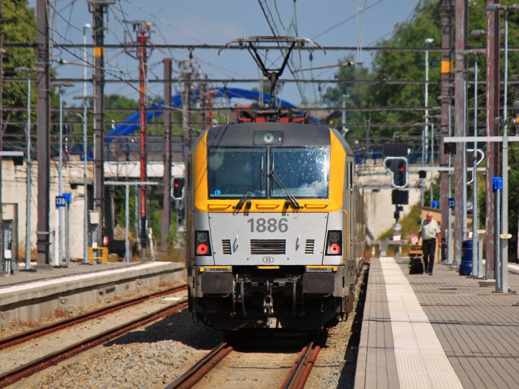 . Margeriten am Wegesrand - Die 3005 zieht den IR 112 Luxembourg - Liers dem Bahnhof von Mersch entgegen, vorbei an blühenden Sommerblumen, welche den Wanderweg an der Bahnstrecke zieren. 15.06.2013 (Jeanny)