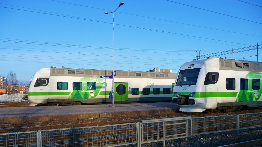 Triebwagen Sm4 #6301 und 6408 der VR im Bahnhof Riihimäki, 14.4.13