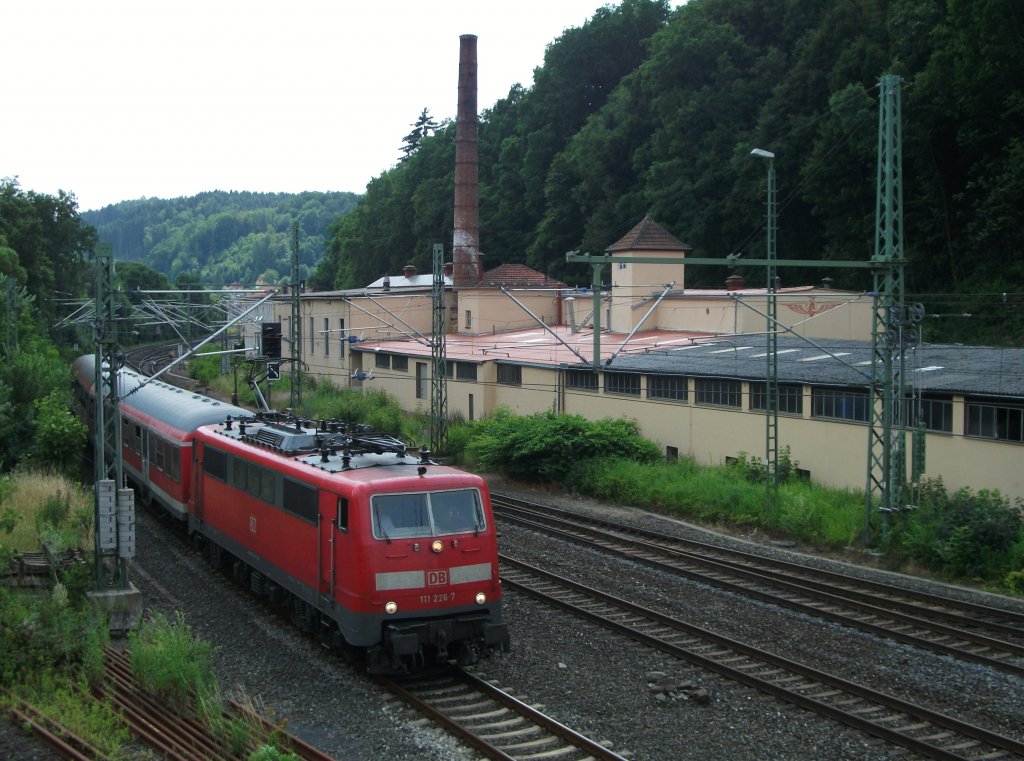 111 226-7 erreicht am 17.Juli 2013 mit einer RB nach Saalfeld(Saale) den Bahnhof Kronach.