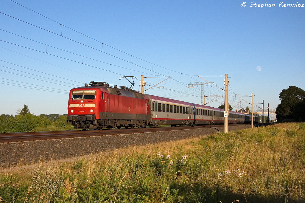 Hier 101 064-4 mit einem CNL-Leerpark, bei der Durchfahrt am 28.6.2013 durch Berlin Wannsee, in Richtung Berlin Grunewald.