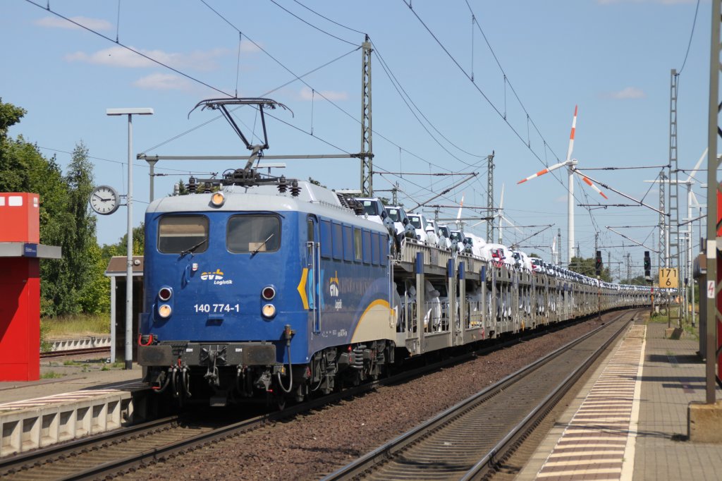 140 774-1 EVB mit Autozug am 20.07.2013 in Eilsleben
