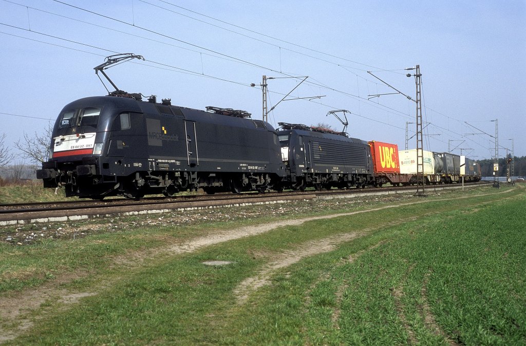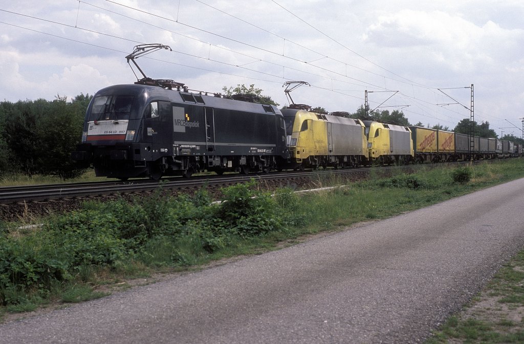 Am 19.Juni 2013 war RP/EVB 193 802 mit einem Containerzug bei Burgstemmen auf dem Weg Richtung Süden.