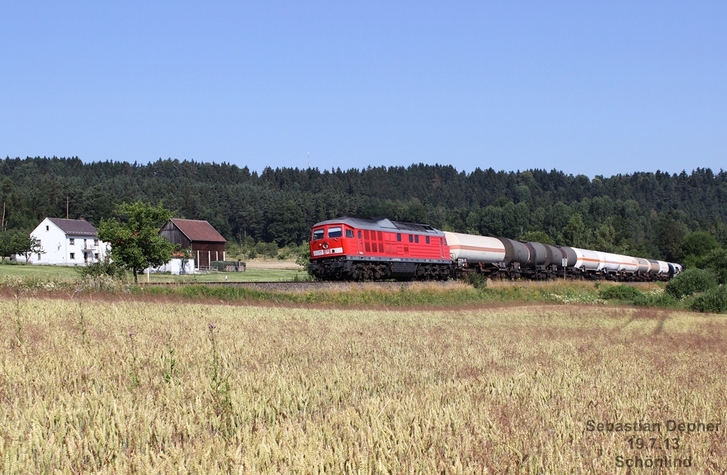 233 373 bespannte am 19.7.13 den EZ 45360 von Cheb nach Nürnberg, der über Weiden umgeleitet wird, bei Schönlind