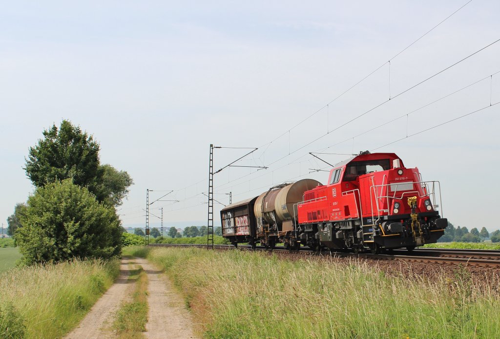 Am 19.Juni 2013 war DBSR 261 070 bei Burgstemmen mit einer Übergabe auf dem Weg nach Hannover-Linden Gbf.
