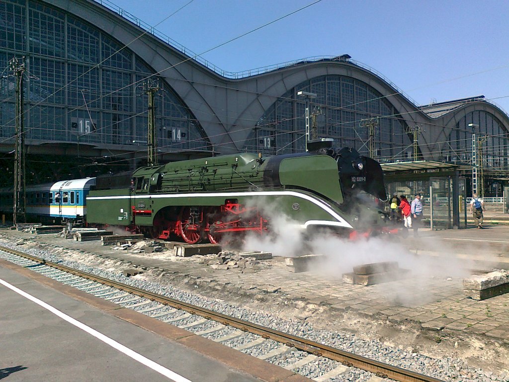 Ausfahrt von 02 0201-0, mit einem Sonderzug, aus dem Leipziger Hbf.
