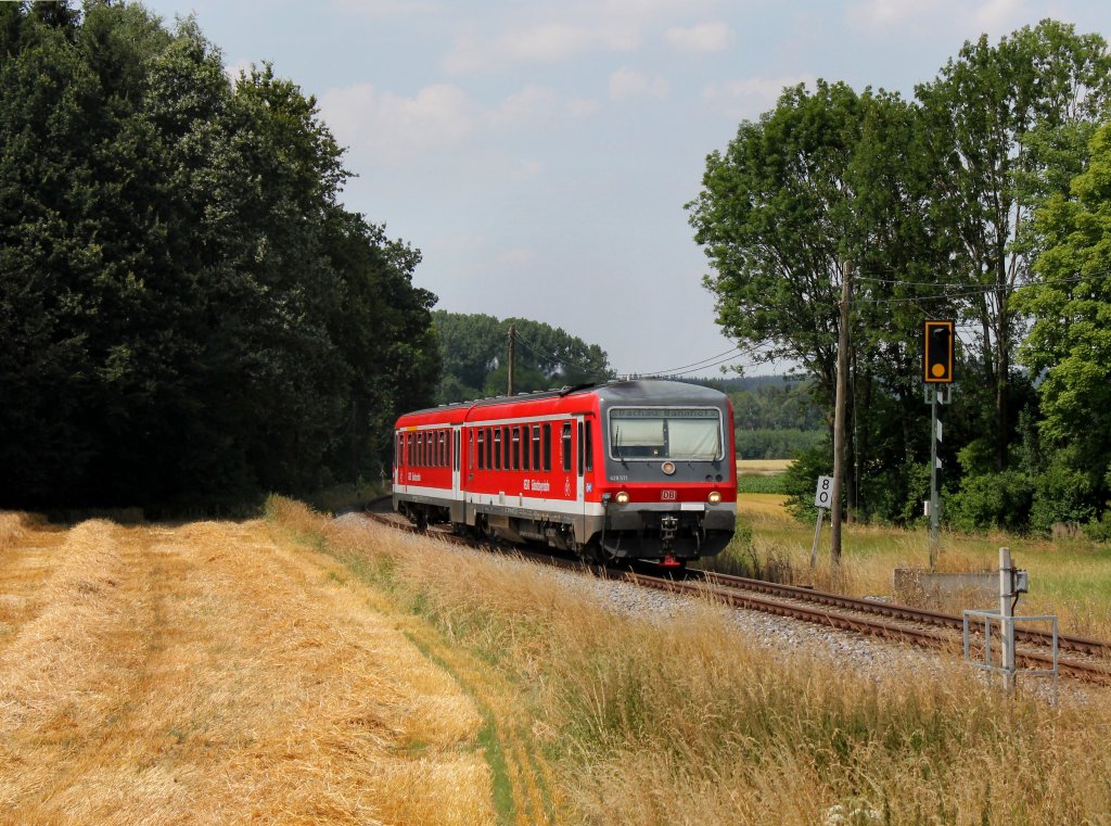Der 628 571 als S Bahn nach Dachau am 20.07.2013 unterwegs bei Oberbachern.