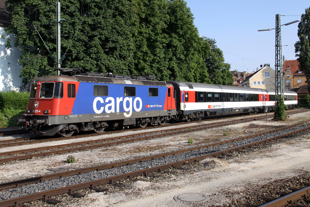 Die SBB Cargo 421 372-4 ist abgestellt mit einem EC in Lindau am 13.07.2013