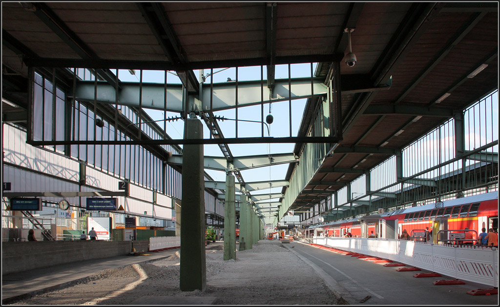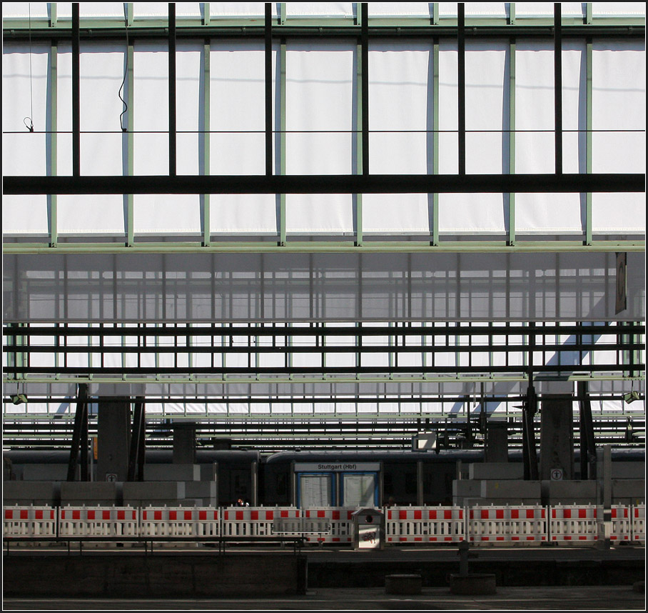 Durch die Veränderungen am Bahnsteigdach des Stuttgarter Hauptbahnhofes ergeben sich andere Lichtverhältnisse, die bald schon wieder Geschichte sind.