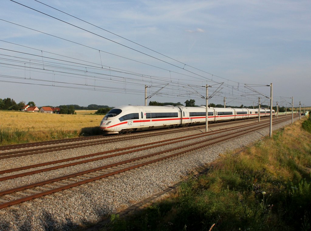 Ein ICE 1 fährt am 21.Juli 2013, ohne Bordrestaurant, als ICE 708 nach Berlin Gesundbrunnen durch Kronach Richtung Saalfeld.