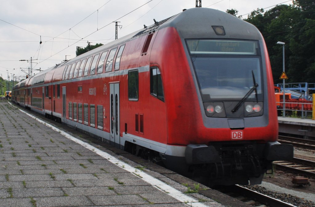 Hier ein RE1 (RE18111) von Magdeburg Hbf. nach Frankfurt (Oder), bei der Ausfahrt am 28.6.2013 aus Berlin Wannsee.