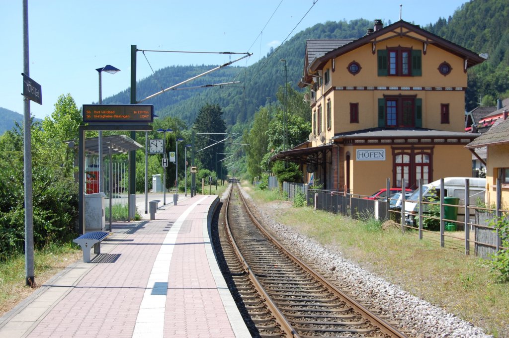Höfen (Enz) Bf am 21. Juli 2013 mit der S-Bahn Linie 6 Richtung Bad Wildbad.
