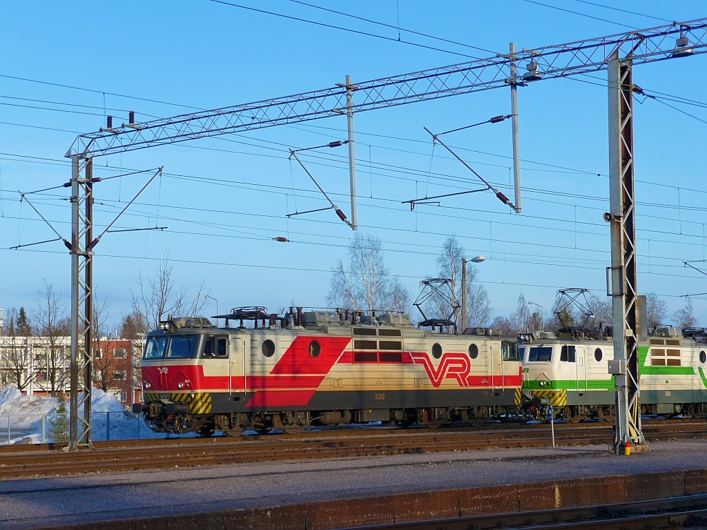 Bleibt im Rahmen: E-Lok der VR-Baureihe Sr1, #3012, abgestellt in Riihimäki, 14.4.13