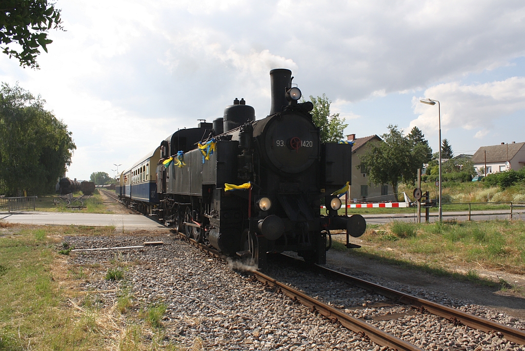 Von den letzten Sonnenstrahlen begleitet durchfährt am 24.07.13 Rj 165 (Zürich HB-Budapest-Keleti) den Bhf. Gramatneusiedl.